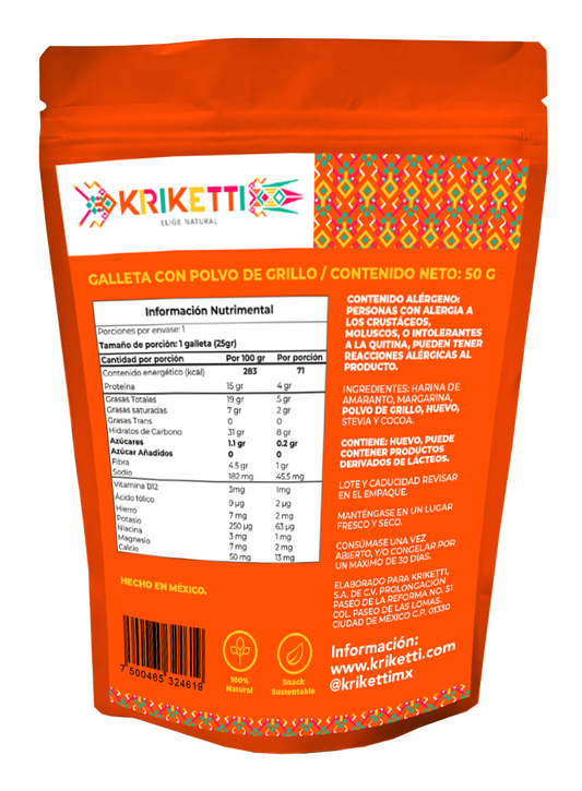 Galleta de Cocoa con Polvo de Grillo/Amaranto SIN AZÚCAR - 50 g